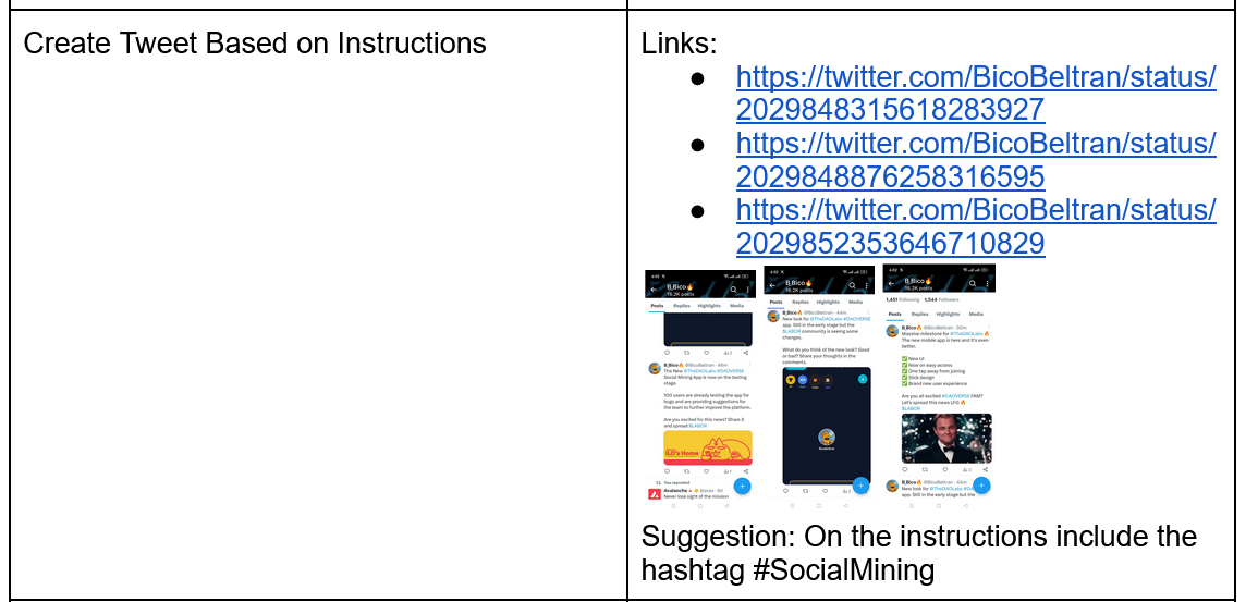 - Create Tweet Based on Instructions: Links provided for two tweets.