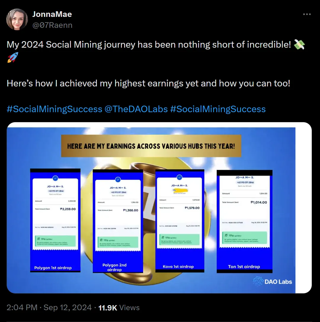 Jonna Mae Sarabia was first introduced to the concept of Social Mining by her sister-in-law Caren. Her initial reaction was one of surprise, earning an income from home through social connections and community engagement was a brand-new idea