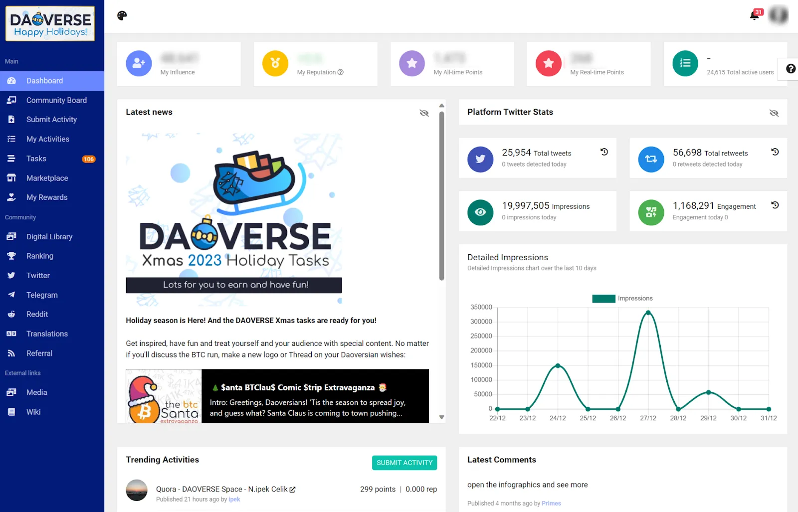 We care a lot about our platforms’ look and feel. For instance, we deployed an easier wallet connection for users, a better and most comprehensive information bar to display actual and all-time points and a smarter notifications system. Hubbers can appreciate it on TC Hub and DAOVERSE, and soon will be available on all other Hubs. We’re also working on a revamped Reddit Program, which we hope to be showing very soon, too, first hand to testers and then accessible to all community members.