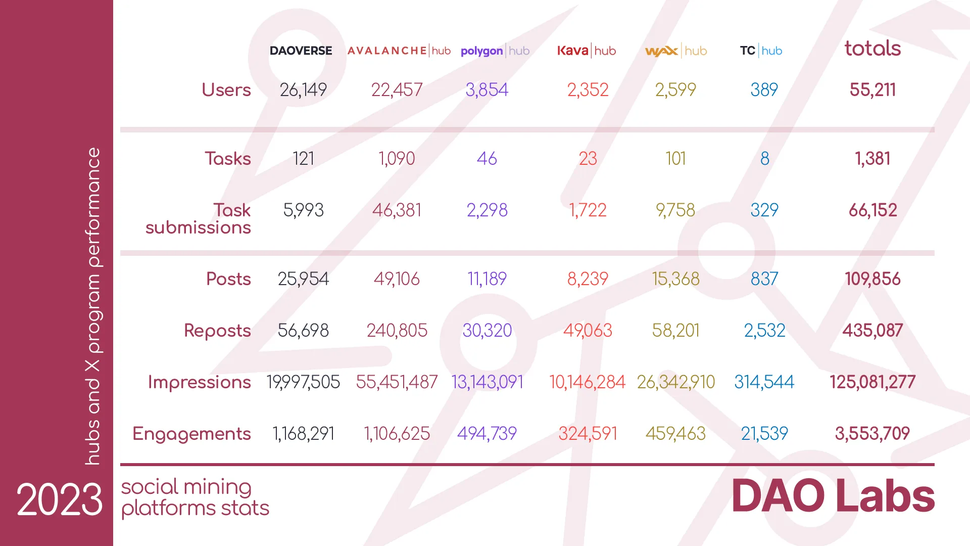More Hubs, Social Mining V2 features, improved X Program scan for all platforms and an updated task modeling are headed to this Galaxy. The DAO Labs Core is working hard to bring you all that, so rest assured that 2024 will be simply amazing.